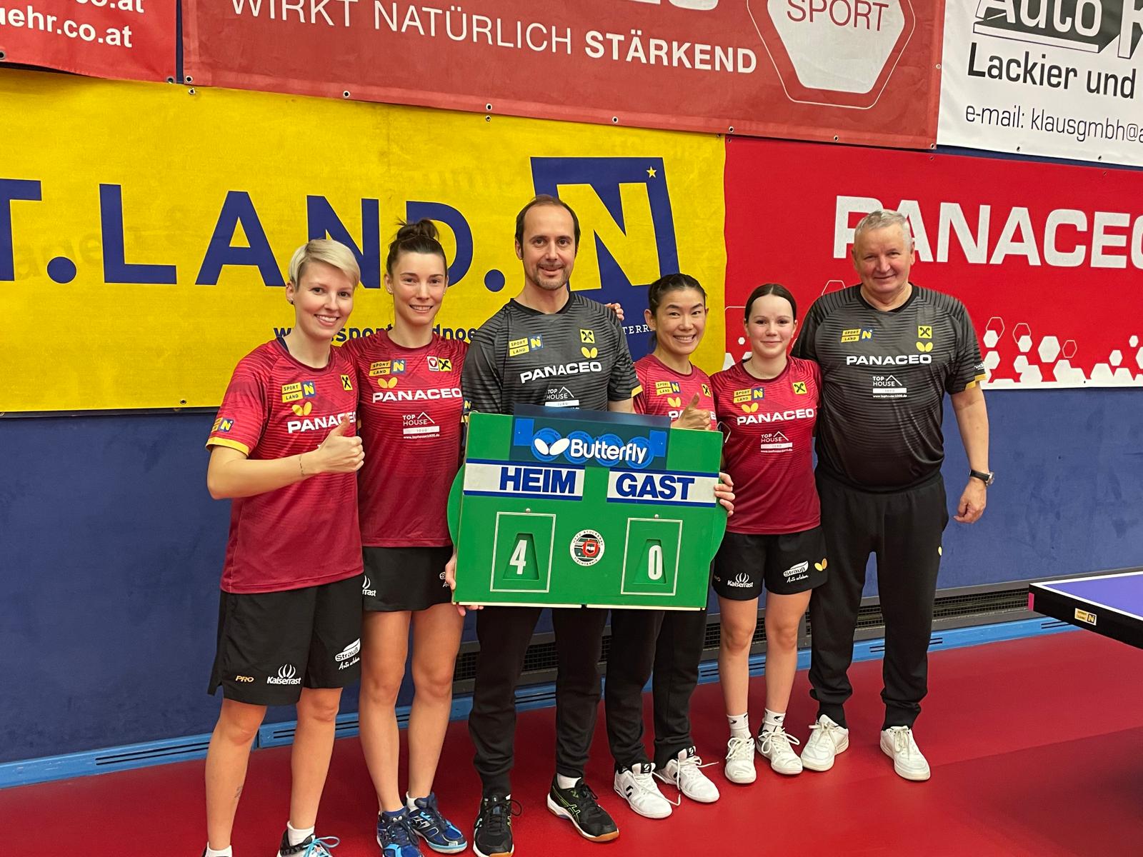 Auch die Damen, Yuan Liu, Karoline Mischek, Nina Skerbinz und Nicole Galitschitsch, des UTTC Panaceo Stockerau präsentierten sich weiterhin in bestechender Form. Gegen die Spielerinn des USV Indigo Graz 1 zeigten sie sowohl spielerisch als auch taktisch ihre Klasse. Mit starken Einzelleistungen und hoher mannschaftlicher Geschlossenheit wurde ein souveräner Erfolg eingefahren.